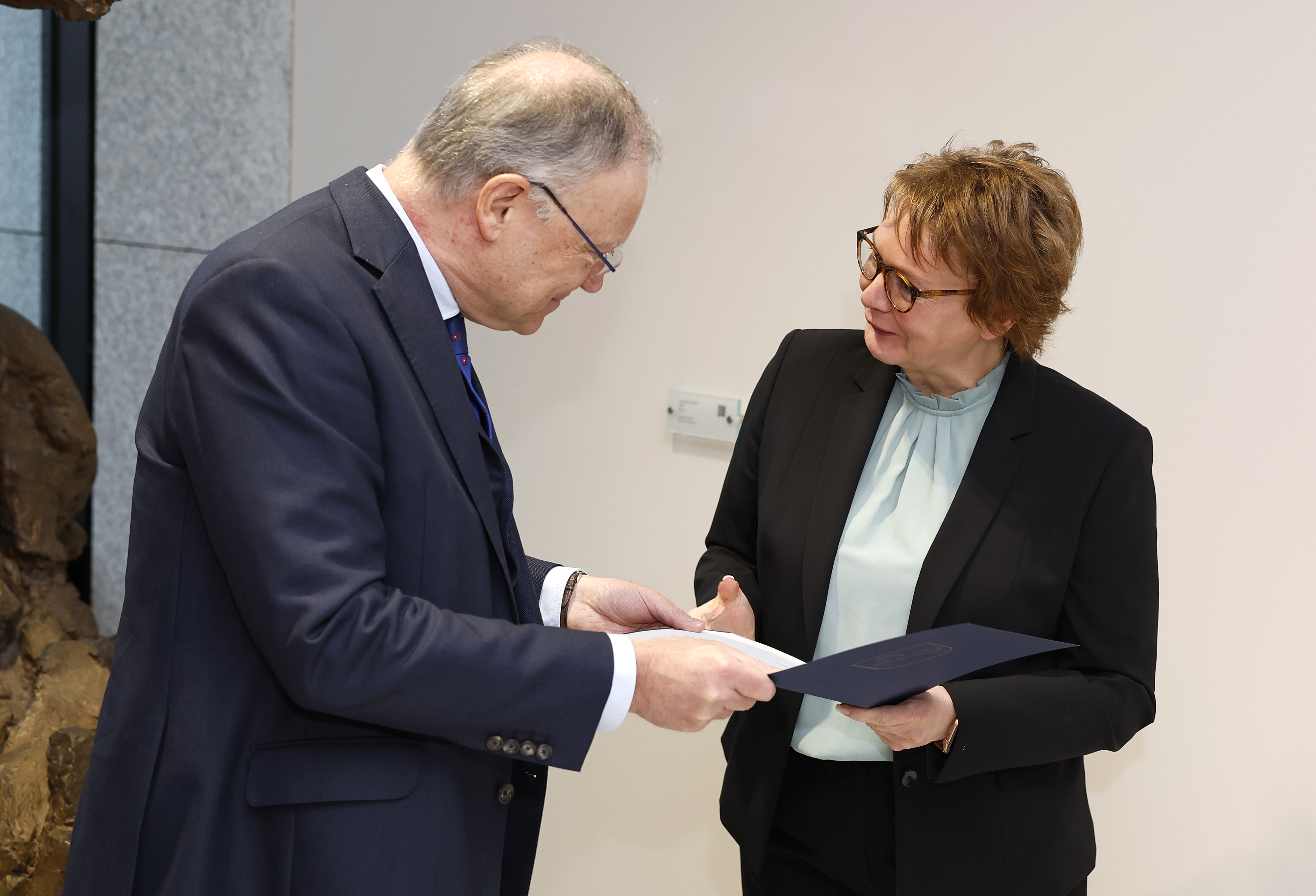 Ministerin Behrens: „Diese neue Aufgabe ist eine Herausforderung, die ich mit Vorfreude, großem Tatendrang und einer gehörigen Portion Respekt annehme. Boris Pistorius hat in seiner fast zehnjährigen Amtszeit viele Dinge verändert, modernisiert, neu gedacht und auf den Weg gebracht. In diese Zeit fielen die Flüchtlingsbewegungen in 2015/2016, die Corona-Pandemie und die Bedrohungen insbesondere durch den islamistischen Terrorismus. Vor fast einem Jahr begann Vladimir Putin den völkerrechtswidrigen Angriffskrieg Russlands auf die Ukraine. Dieser hat bis heute furchtbare Folgen für die Ukrainerinnen und Ukrainer – und wirkt sich auch spürbar auf Deutschland und Niedersachsen aus. Nahezu 110.000 Menschen sind seit dem 24. Februar 2022 vor Tod und Krieg in unser Bundesland geflohen. Die Unterbringung der Vertriebenen aus der Ukraine bedeutet für das Land und vor allem für die Kommunen eine große Kraftanstrengung. Dazu kommen weitere Herausforderungen, die ich in meinem neuen Amt angehen werde – etwa die nachhaltige Stärkung unserer Sicherheitsbehörden sowie des Brand- und Katastrophenschutzes, die Unterstützung des Sports durch ein weiteres Investitionsprogramm zur Sportstättensanierung und die weiter fortschreitende Digitalisierung der öffentlichen Verwaltung. Ich freue mich auf ein gut geführtes Haus mit Mitarbeiterinnen und Mitarbeitern, die ich in den vergangenen Tagen bereits als ungemein engagiert und motiviert kennengelernt habe. Die Belegschaft des Innenministeriums hat in den vergangenen Jahren vieles geleistet und auch in schwierigen Zeiten Qualität und Verlässlichkeit bewiesen. Gemeinsam werden wir auch die vor uns liegenden Aufgaben bewältigen.“