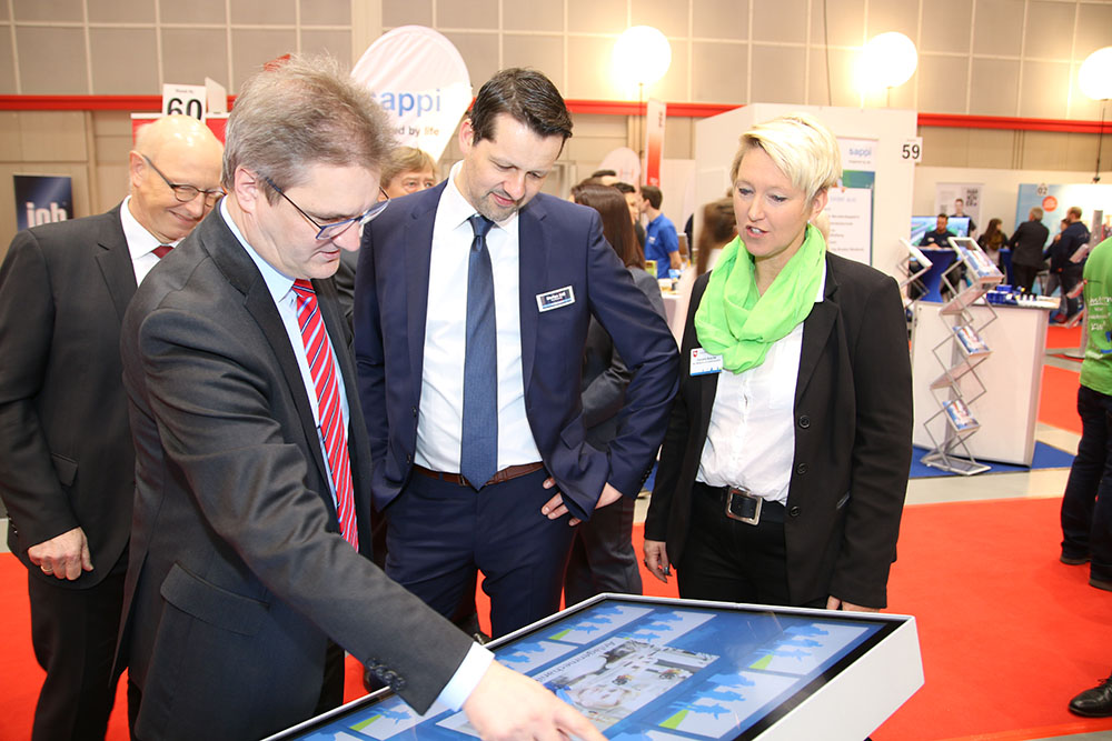 Weitere Highlights des Standes war ein „Touch-Memo-Spiel“, das die Ausbildungsvielfalt von über 80 Ausbildungsberufen und Studienmöglichkeiten in bewegten Bildern vorstellt oder auch der charmante „Mr. Pat-Trick“, der die Besucherinnen und Besucher am Stand mit Zauberei und Charme für ein Gespräch am Stand zu begeistern wusste. 2012 hatte das Team des Landes die ersten Ausbildungsmessen besucht, um das Karriereportal