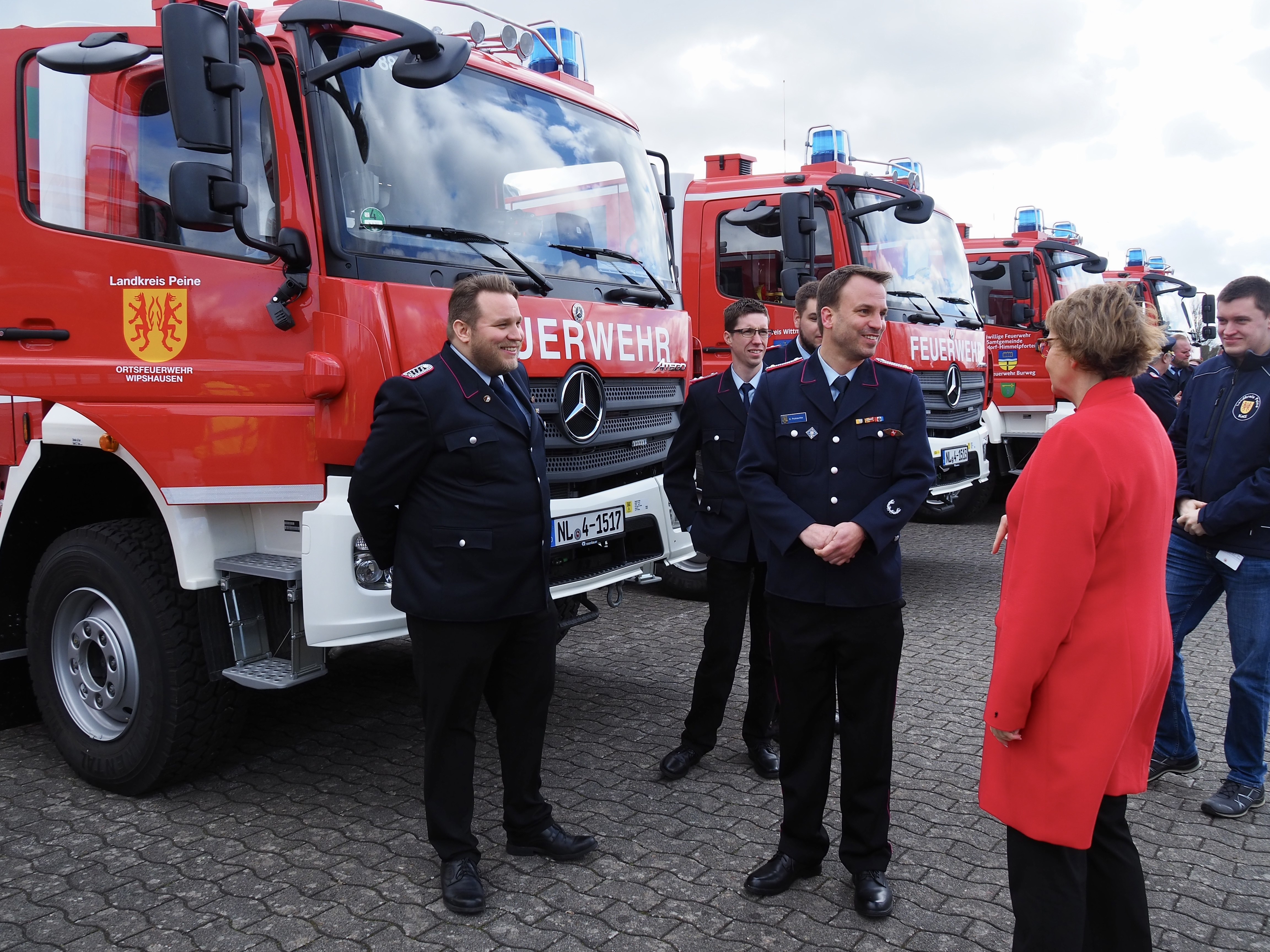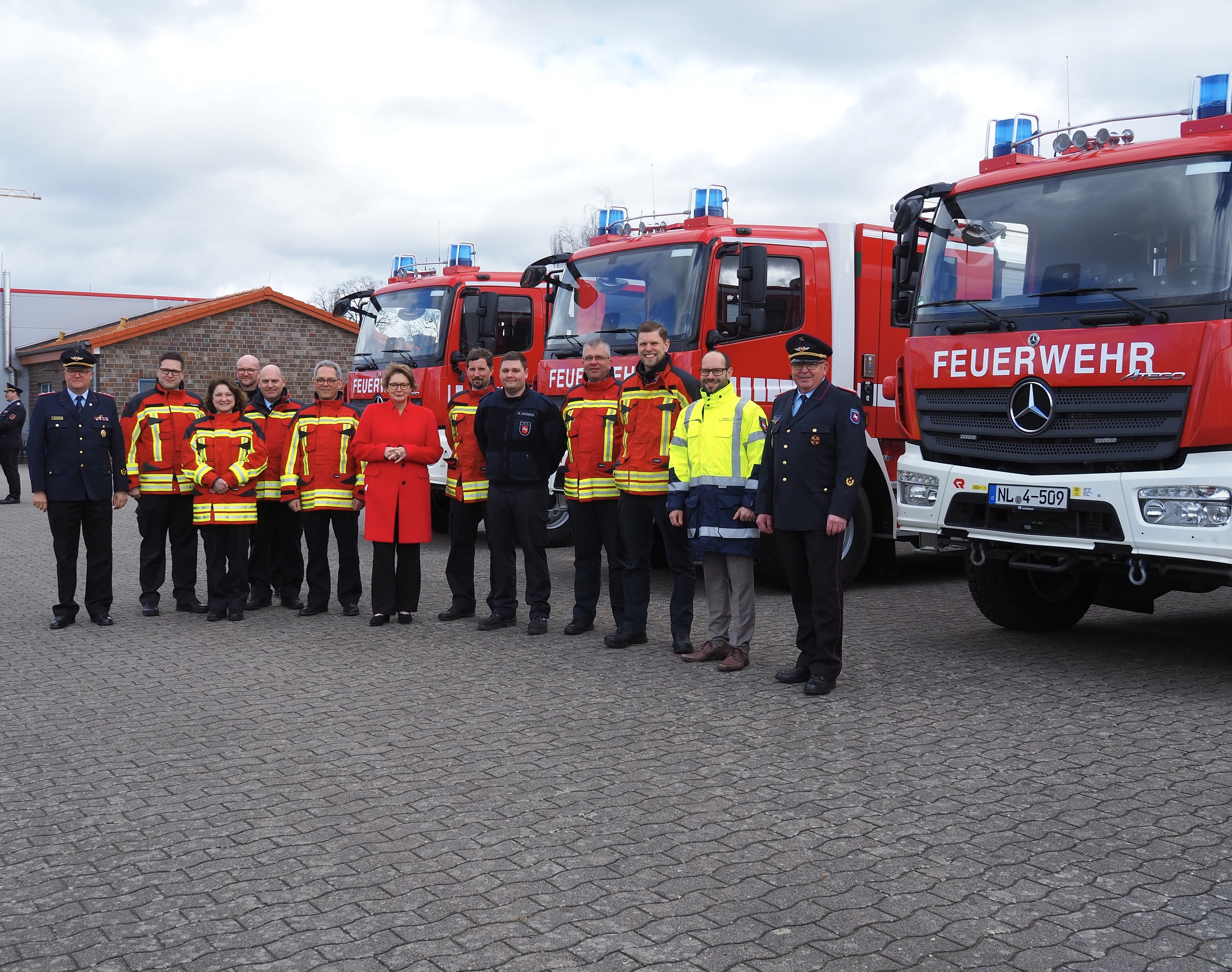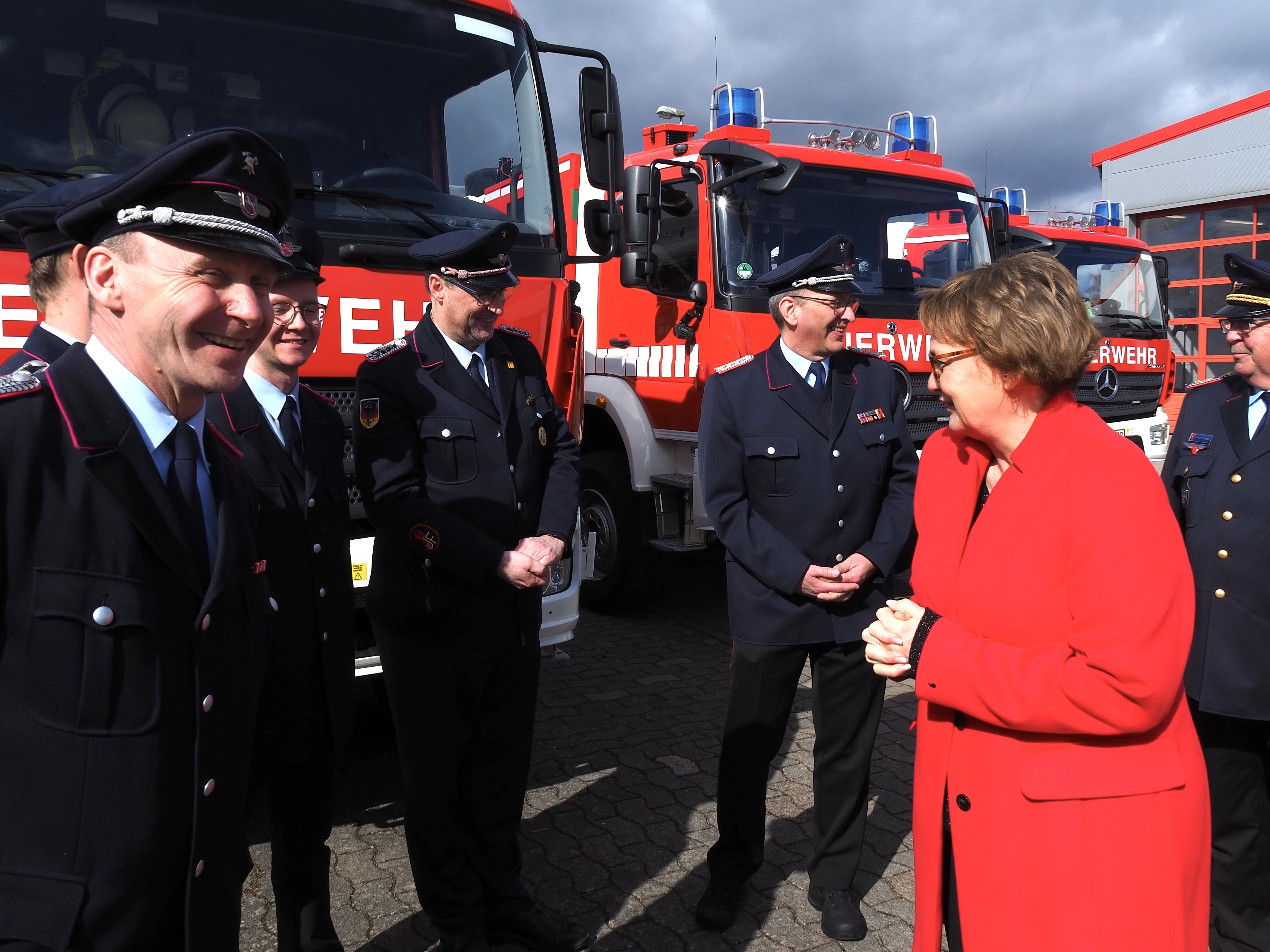 In Syke im Kreis Diepholz hat die Ministerin für Inneres und Sport, Daniela Behrens, heute (16.3.2024) 13 Löschgruppenfahrzeuge für den Einsatz im Katastrophenschutz (LF-KatS NDS) übergeben. Jeweils ein Fahrzeug geht in die Landkreise Cuxhaven, Harburg, Leer, Peine, Rotenburg (Wümme), Stade, Verden, Wittmund und Diepholz. Weitere vier werden am Niedersächsischen Landesamt für Brand- und Katastrophenschutz für die Ausbildung der Niedersächsischen Feuerwehrkräfte eingesetzt. Der Wert der Fahrzeuge beträgt insgesamt rund 5,4 Mio. Euro.