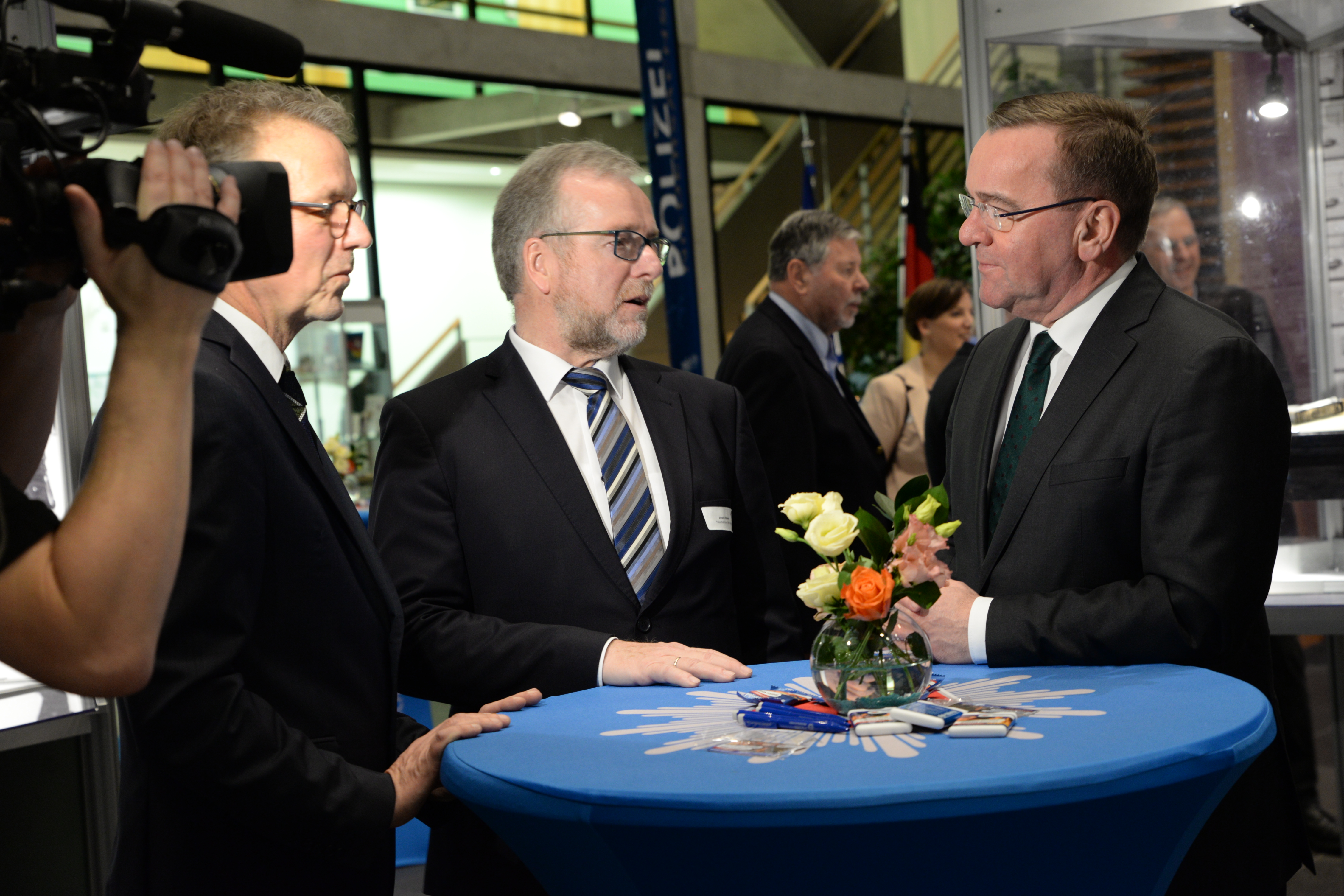 Zudem eröffnete er in der Landesvertretung die Wanderausstellung "Freunde - Helfer - Straßenkämpfer. Die Polizei in der Weimarer Republik".
