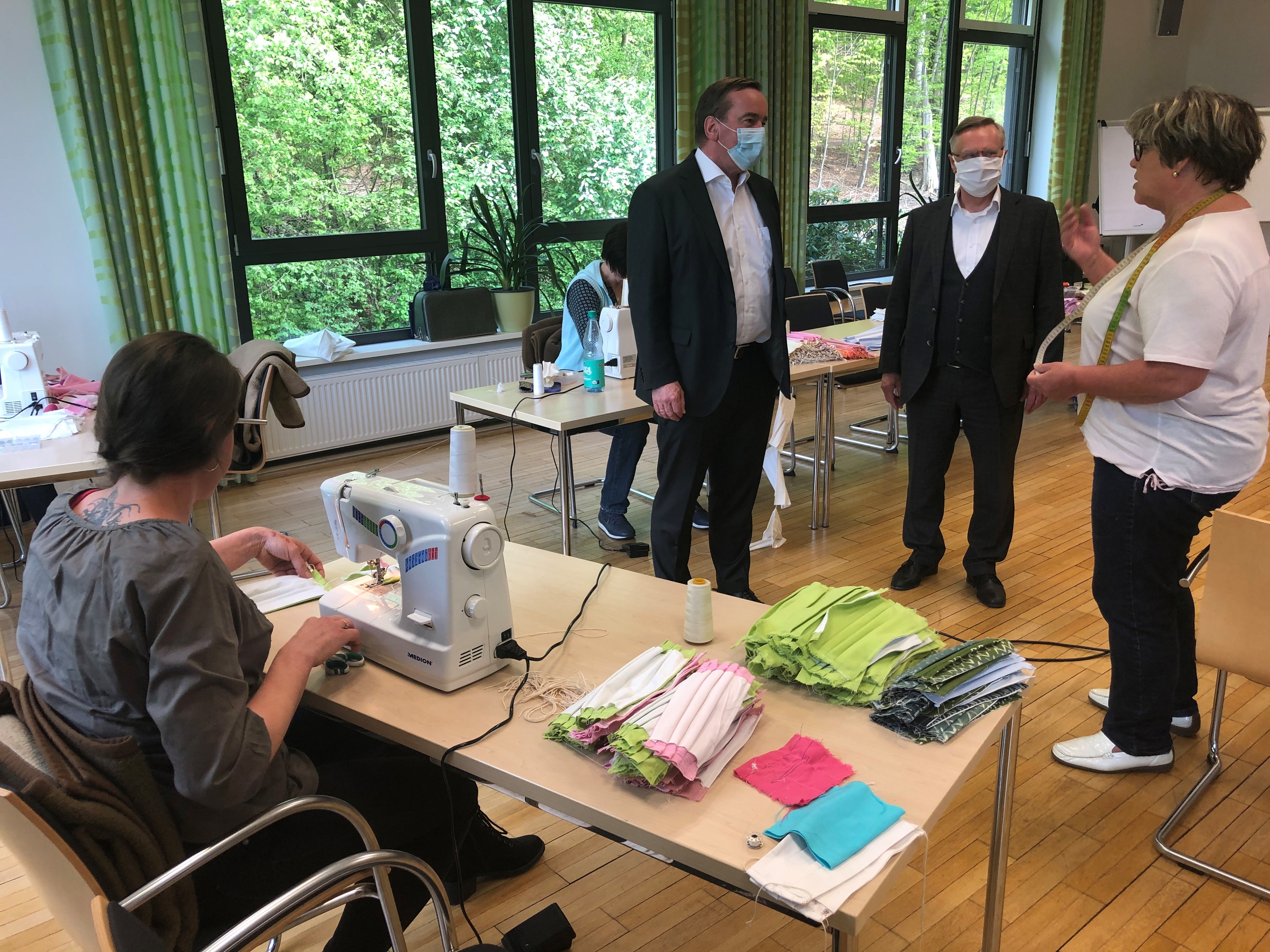 Der Niedersächsische Minister für Inneres und Sport, Boris Pistorius, hat sich heute (29. April 2020) bei einem Besuch des Niedersächsischen Fußballverbandes über die Produktion von Alltagsmasken informiert.